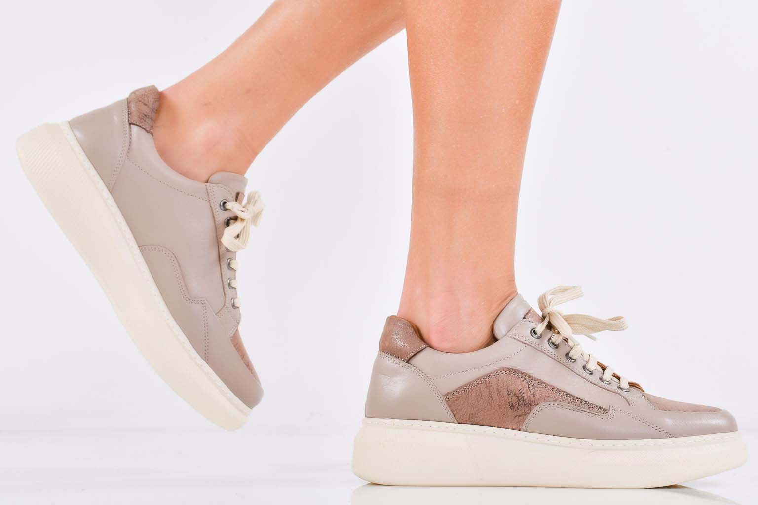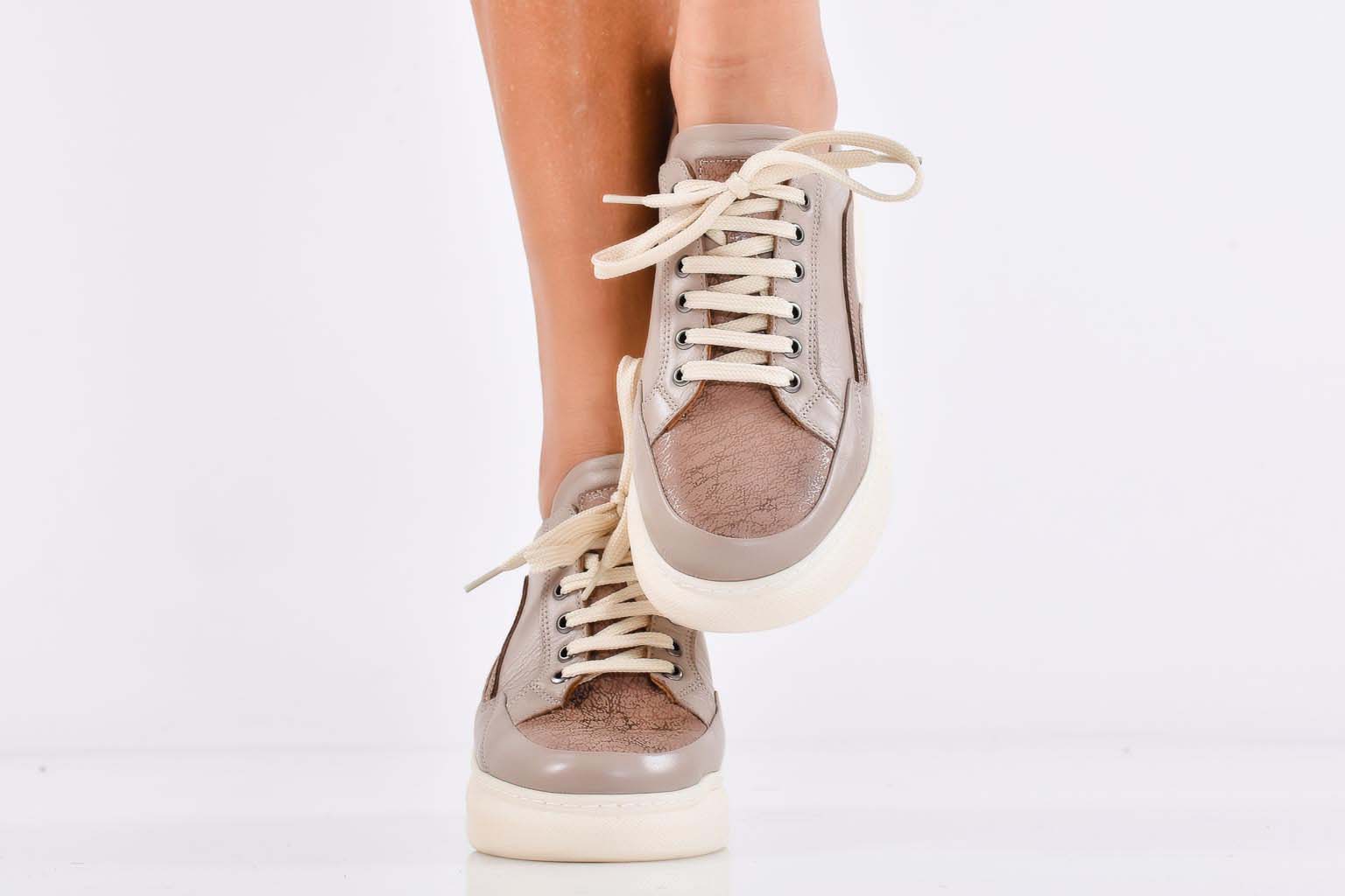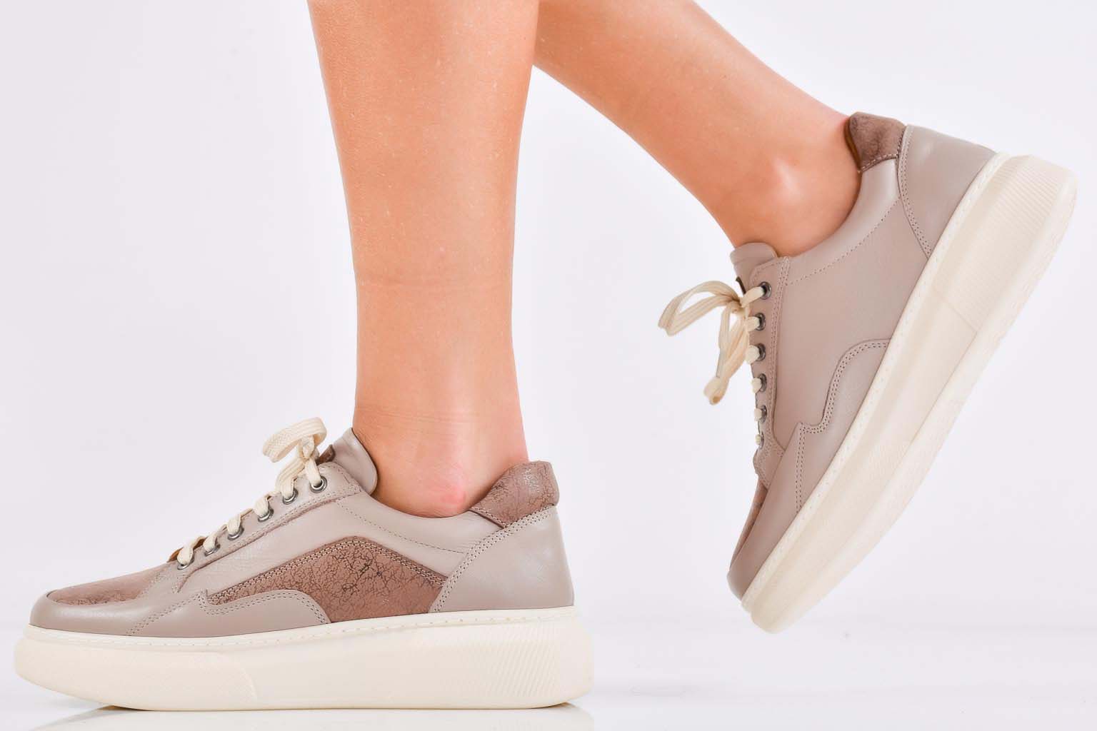 Дамски сникърси естествена кожа бежови EOBUVKIBG #502-7285