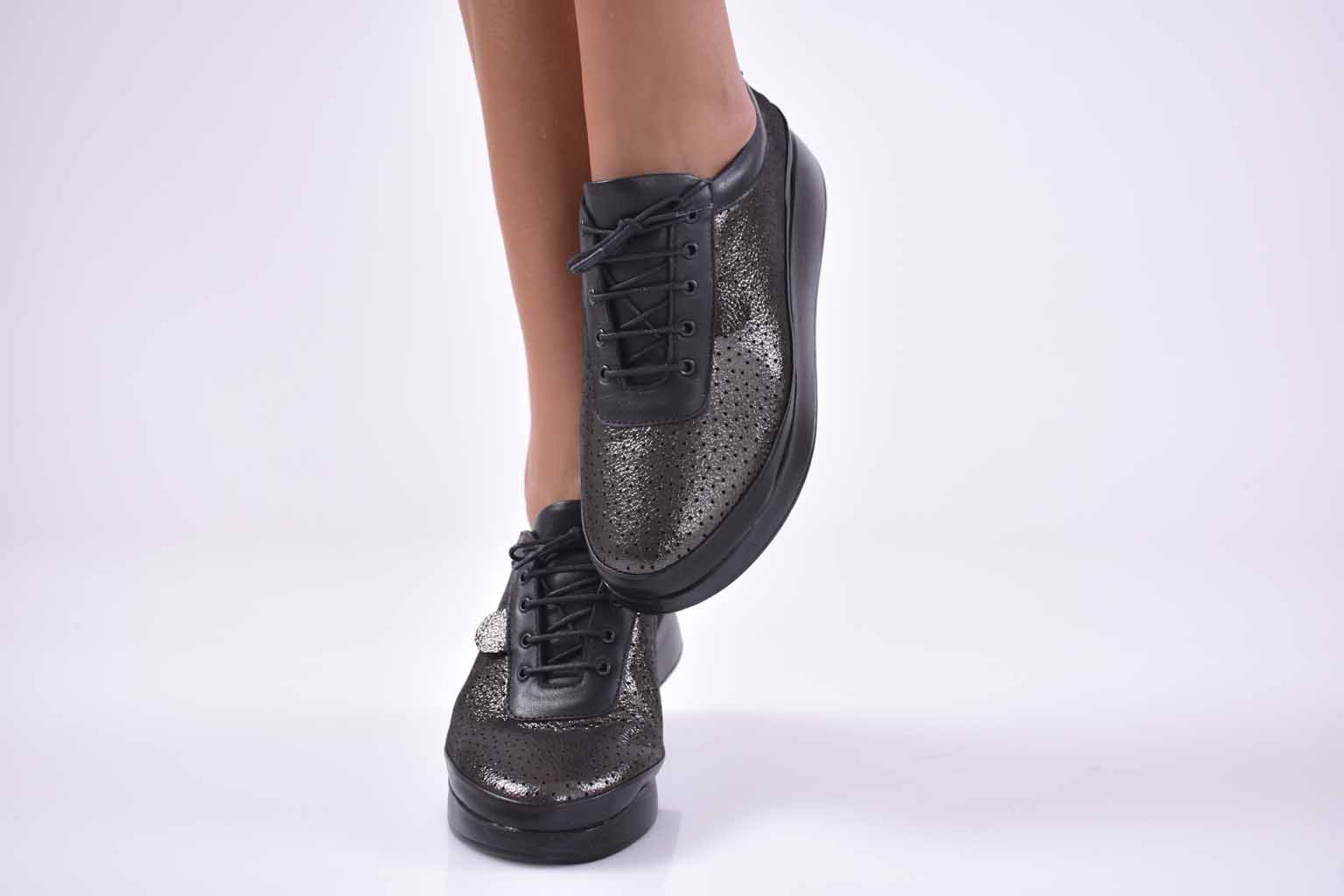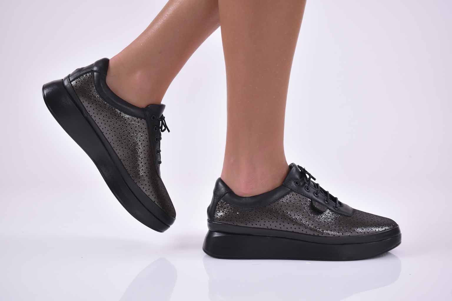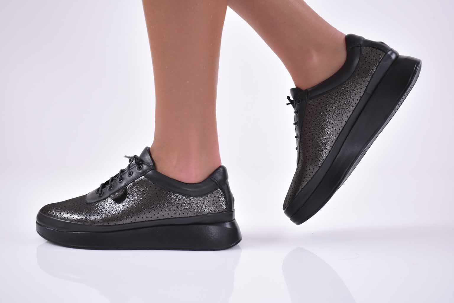 Имаме удоволствието да Ви представим нов модел дамски спортни обувки на EOBUVKIBG 501-9920 изработени изцяло от естествена кожа . Стелката е мека анатомична и комфортна,изработена изцяло от естествена кожа .Модела е с връзки който улеснява обуването Вътрешна част – естествен кожен хастар. Ортопедичната “дишаща” стелка е гарант за мекота и оптимална опора за свода на стъпалото, поддържайки го в правилната позиция при продължително ходене. Подходящи за дами, които държат на удобството през целия ден. Характеристика: Височина на ходилото отпред: 2 см. Височина на ходилото в задната част 3,5 см. Височина на модела от петата до горе 7 см. Цвят:Черен. Номерация:36-40 Моделът е стандартен и отговаря на размерите .