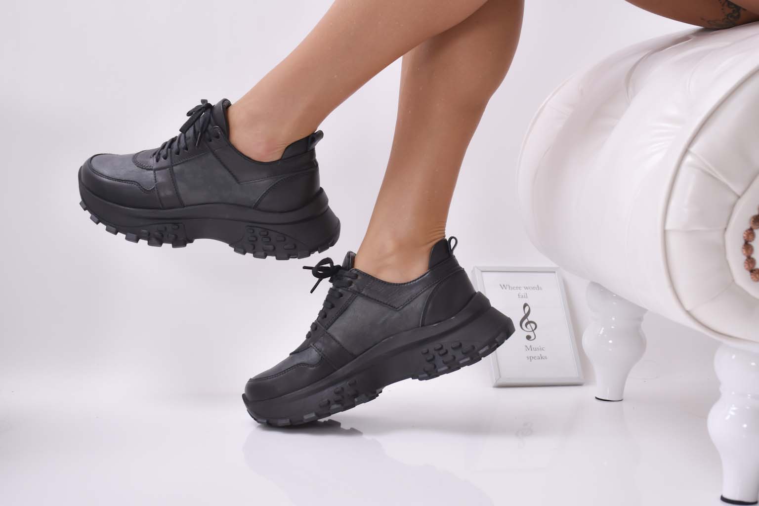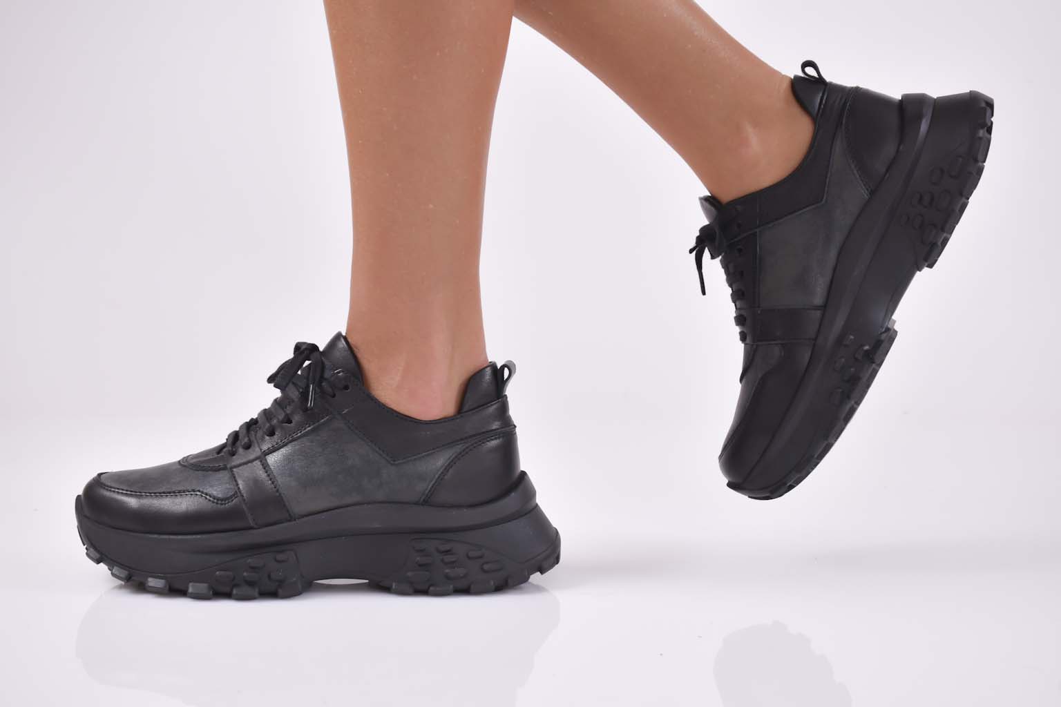Имаме удоволствието да Ви представим нов модел дамски сникърси EOBUVKIBG 502- 3232 изработени изцяло от естествена кожа в черен цвят. Стелката е мека анатомична и комфортна,изработена изцяло от естествена кожа.Модела е с връзки който улесняват обуването. Вътрешна част – естествен кожен хастар. Ортопедичната стелка е гарант за мекота и оптимална опора за свода на стъпалото, поддържайки го в правилната позиция при продължително ходене. Височина на ходилото отпред: 3 ,5см. Височина на ходилото в задната част 5 см.