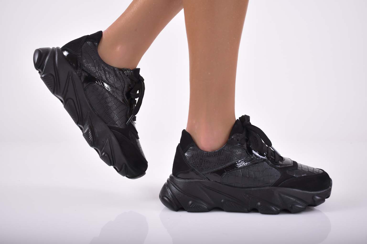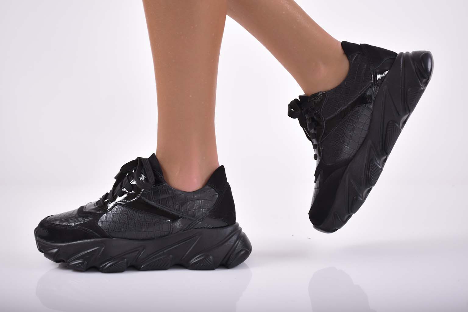 Дамски сникърси естествена кожа черни EOBUVKIBG #502-3512