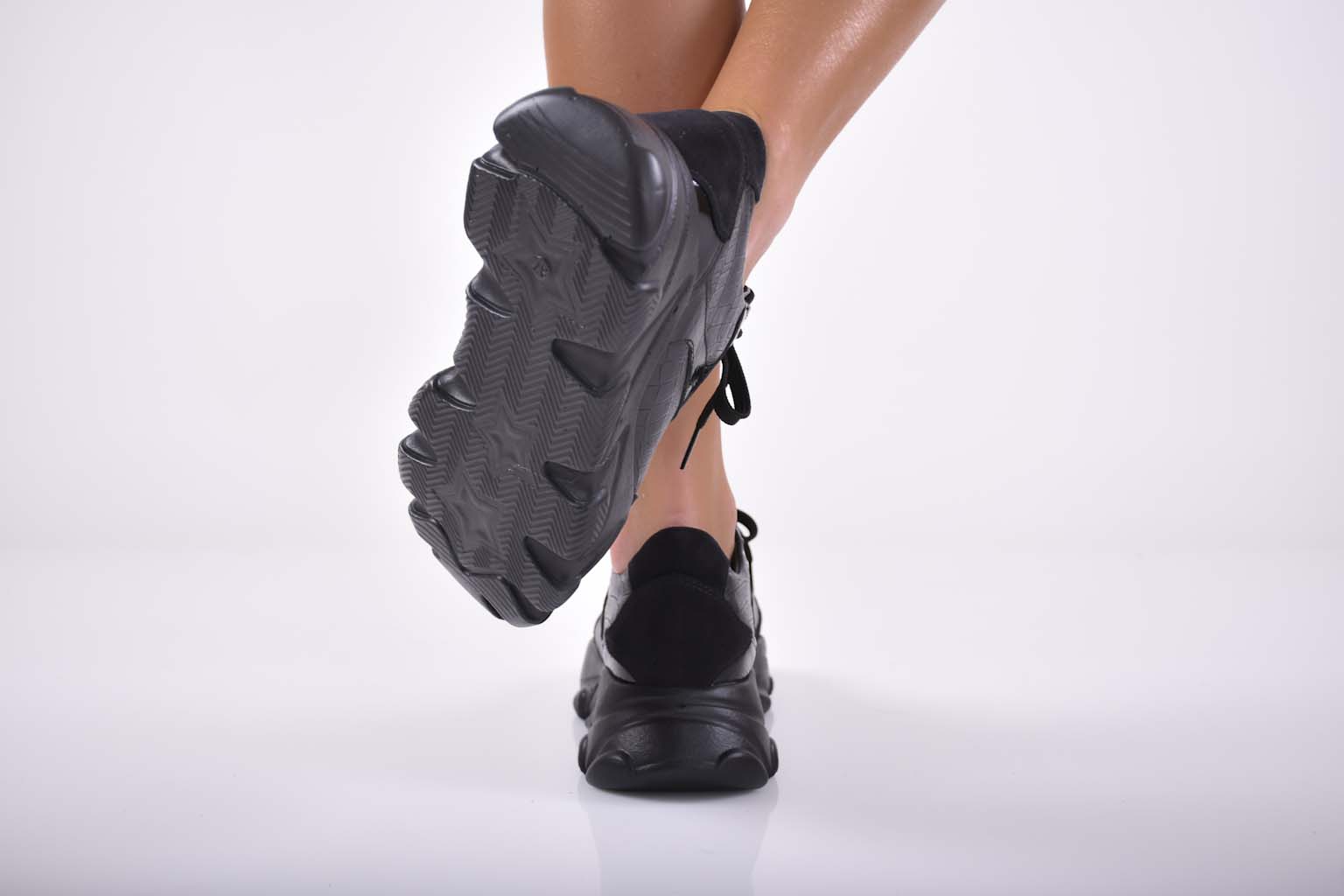 Имаме удоволствието да Ви представим нов модел дамски сникърси EOBUVKIBG 502- 3512 изработени изцяло от естествена кожа в черен цвят. Стелката е мека анатомична и комфортна,изработена изцяло от естествена кожа.Модела е с връзки който улесняват обуването. Вътрешна част – естествен кожен хастар. Ортопедичната стелка е гарант за мекота и оптимална опора за свода на стъпалото, поддържайки го в правилната позиция при продължително ходене.