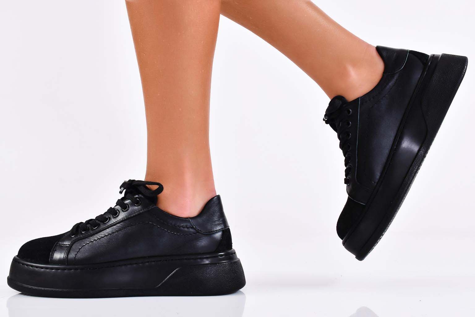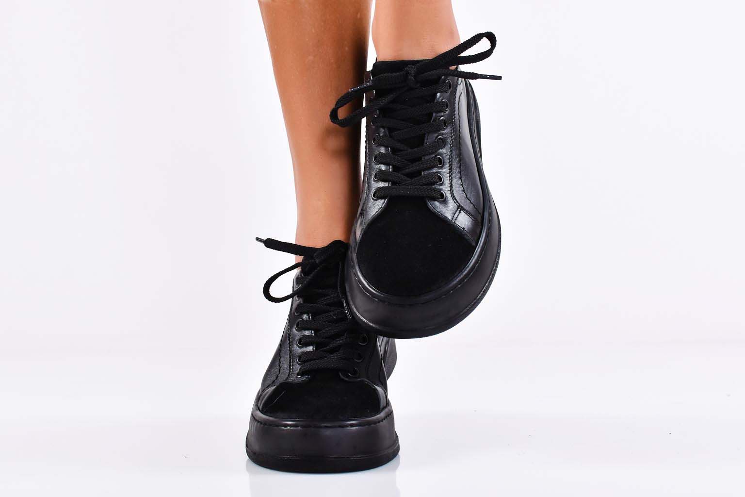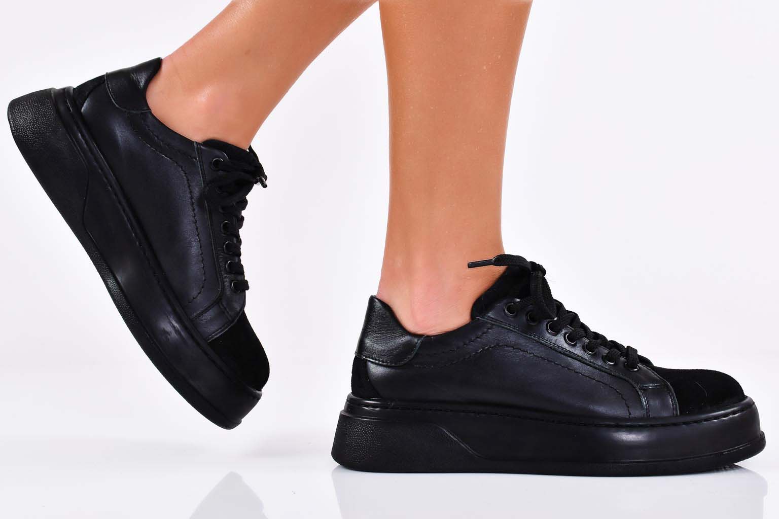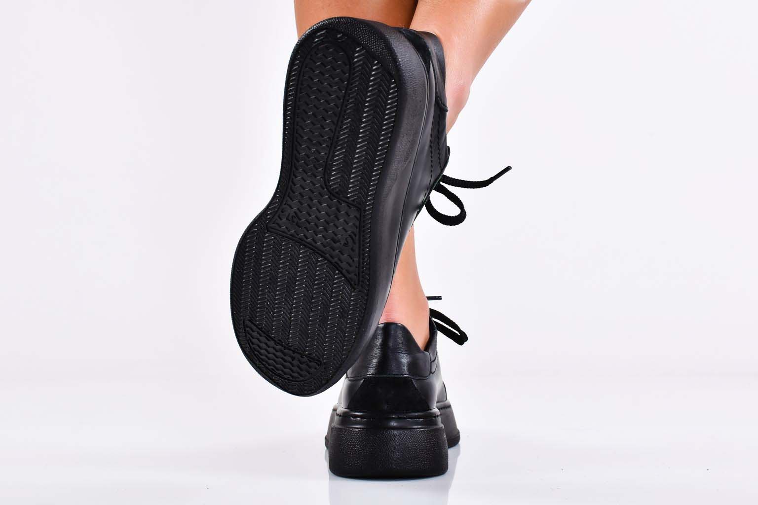 Дамски сникърси естествена кожа черни EOBUVKIBG #502-6220
