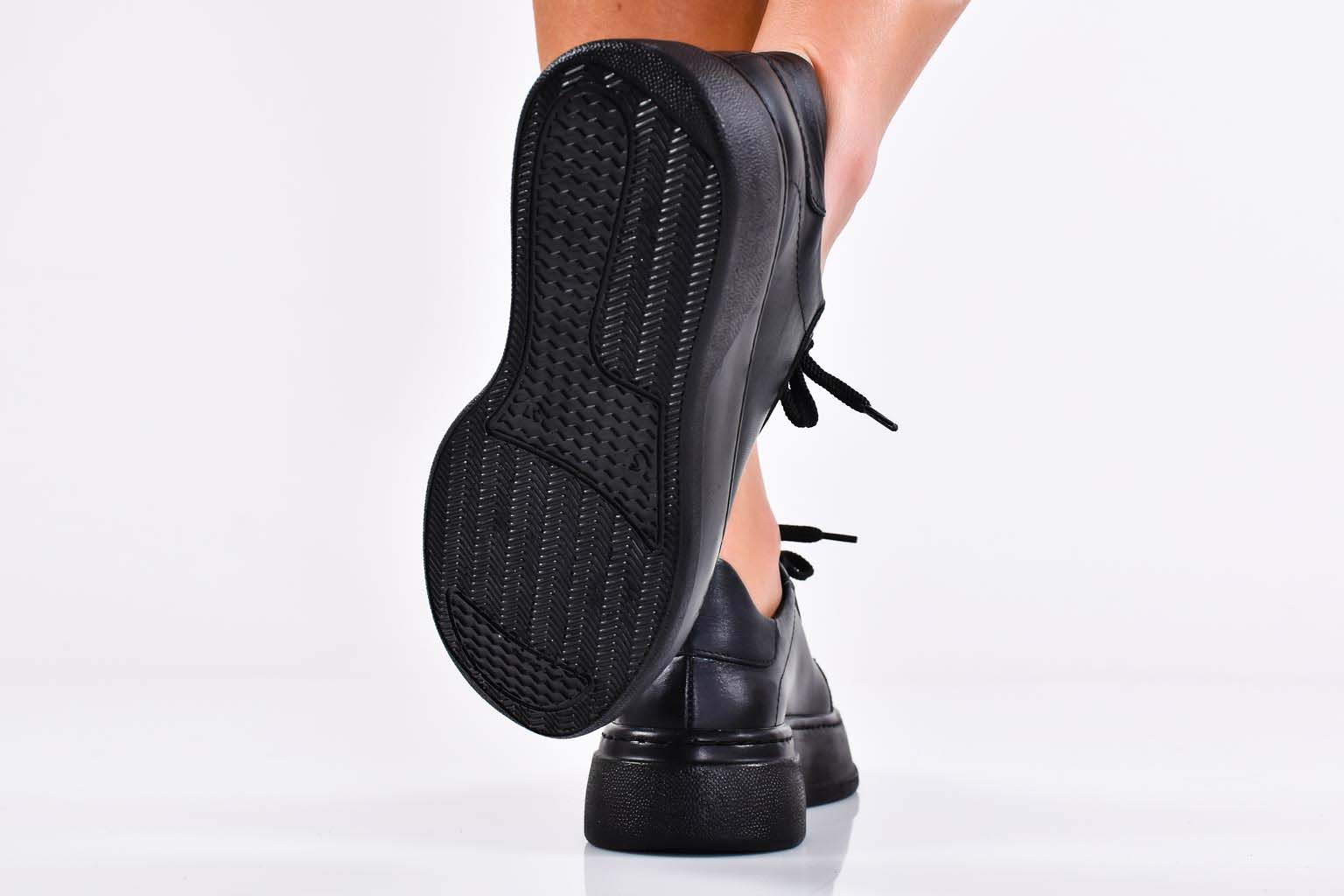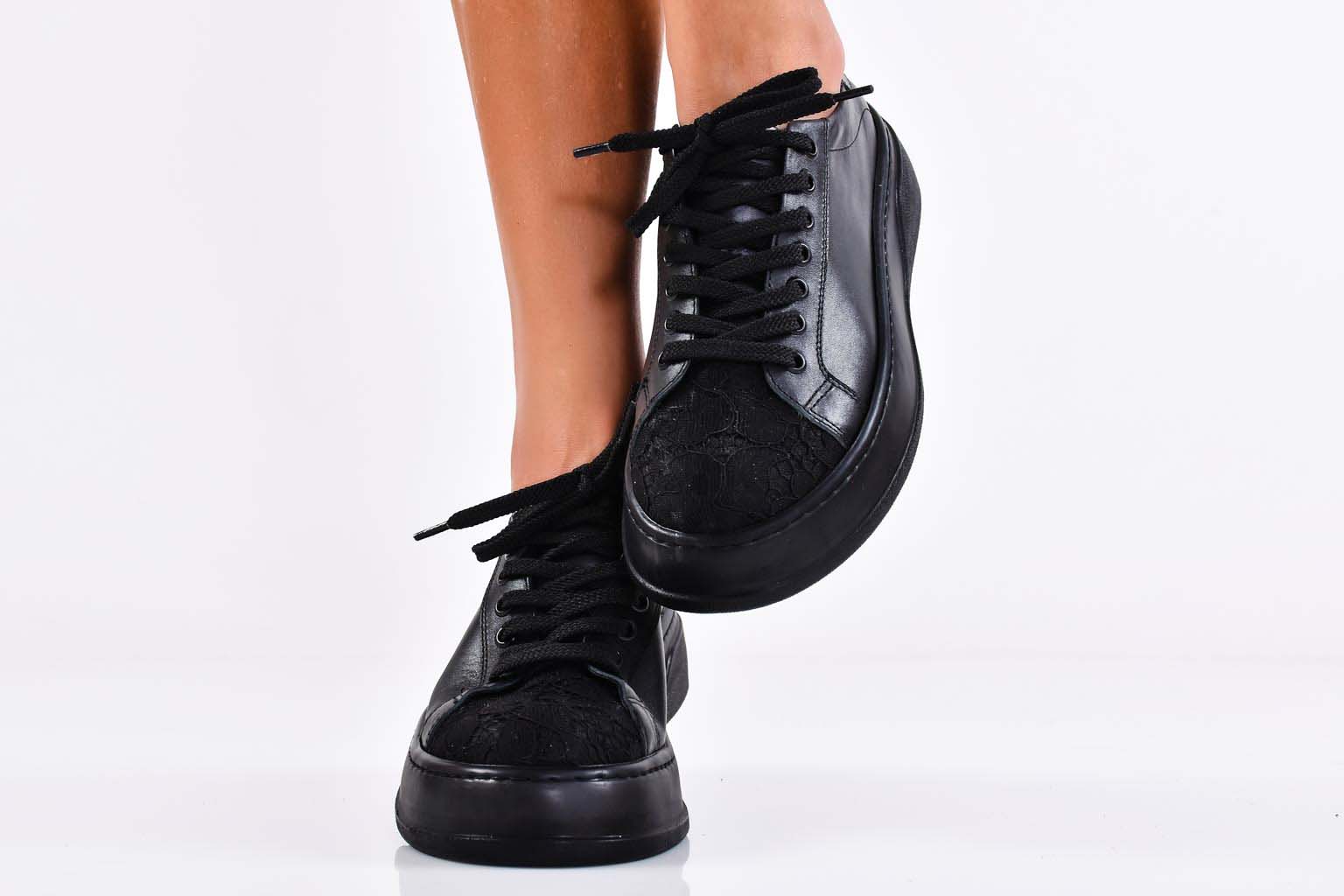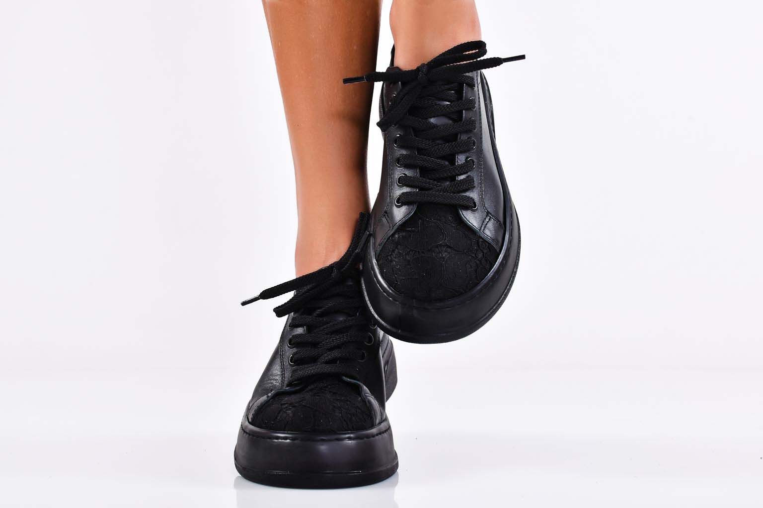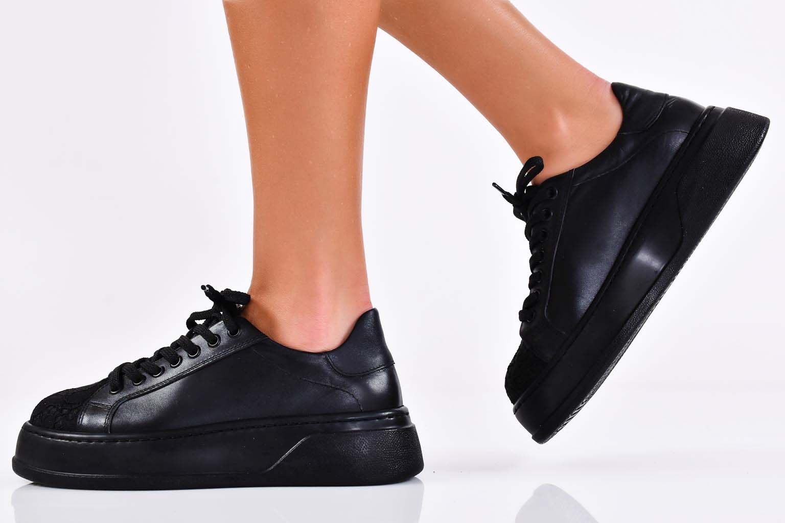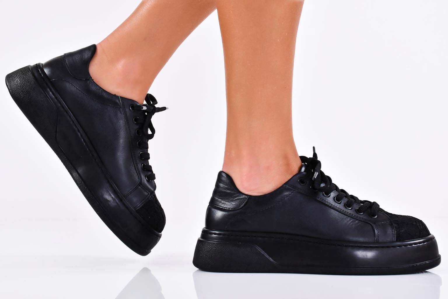 Дамски сникърси естествена кожа черни EOBUVKIBG #502-6226