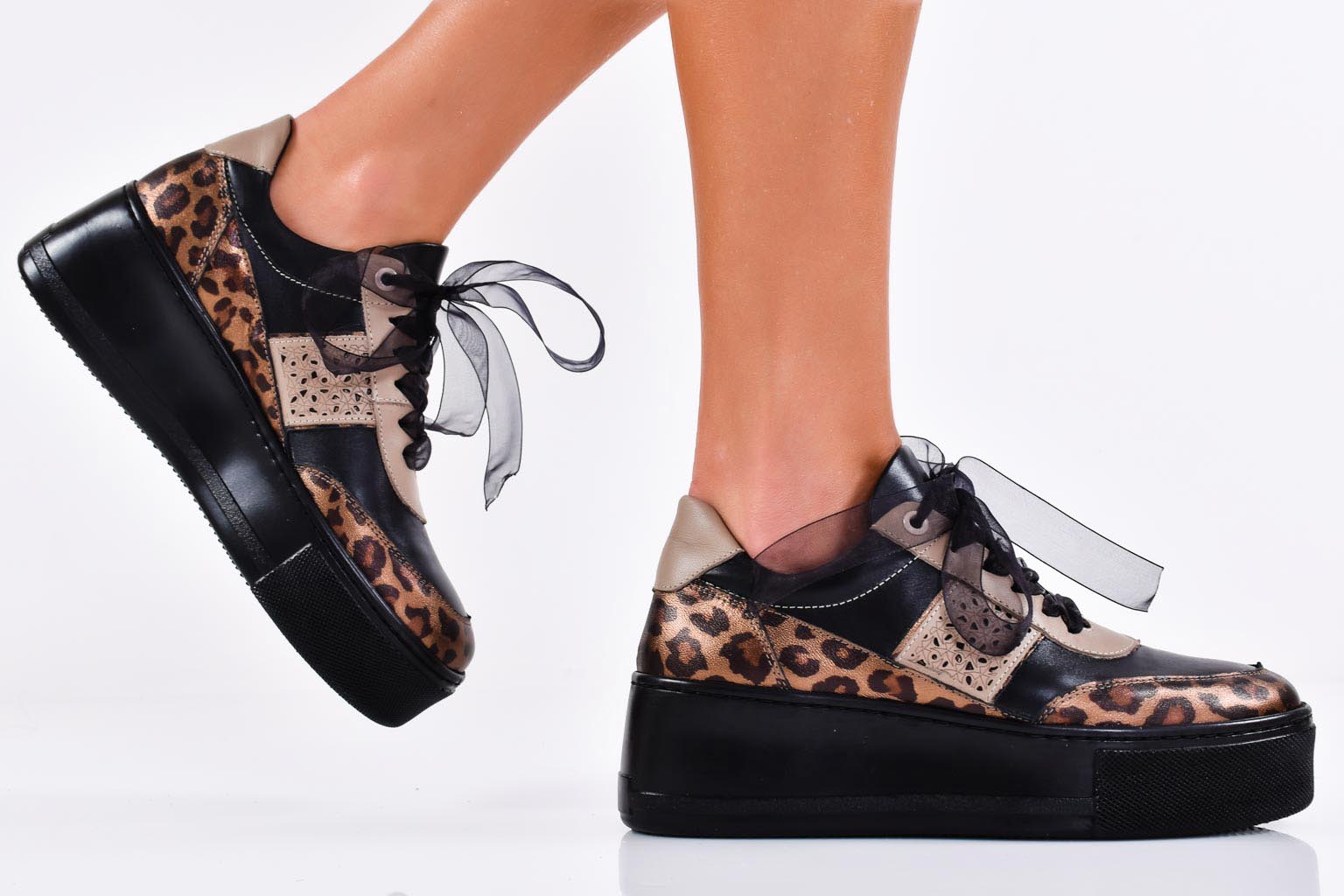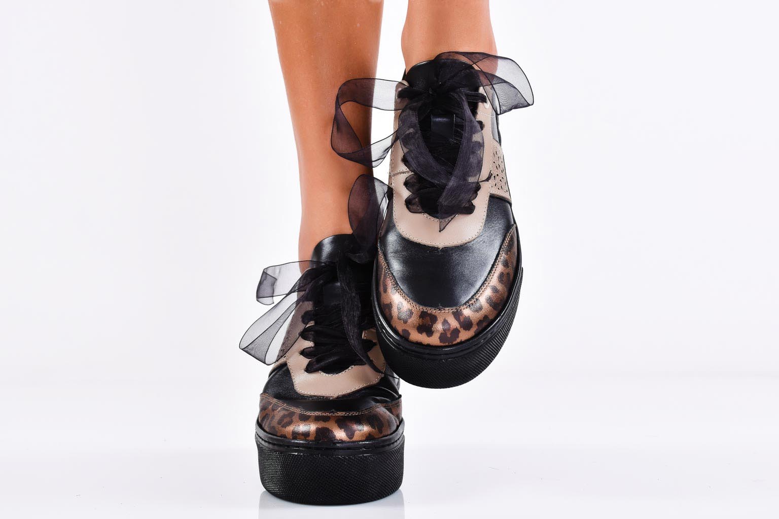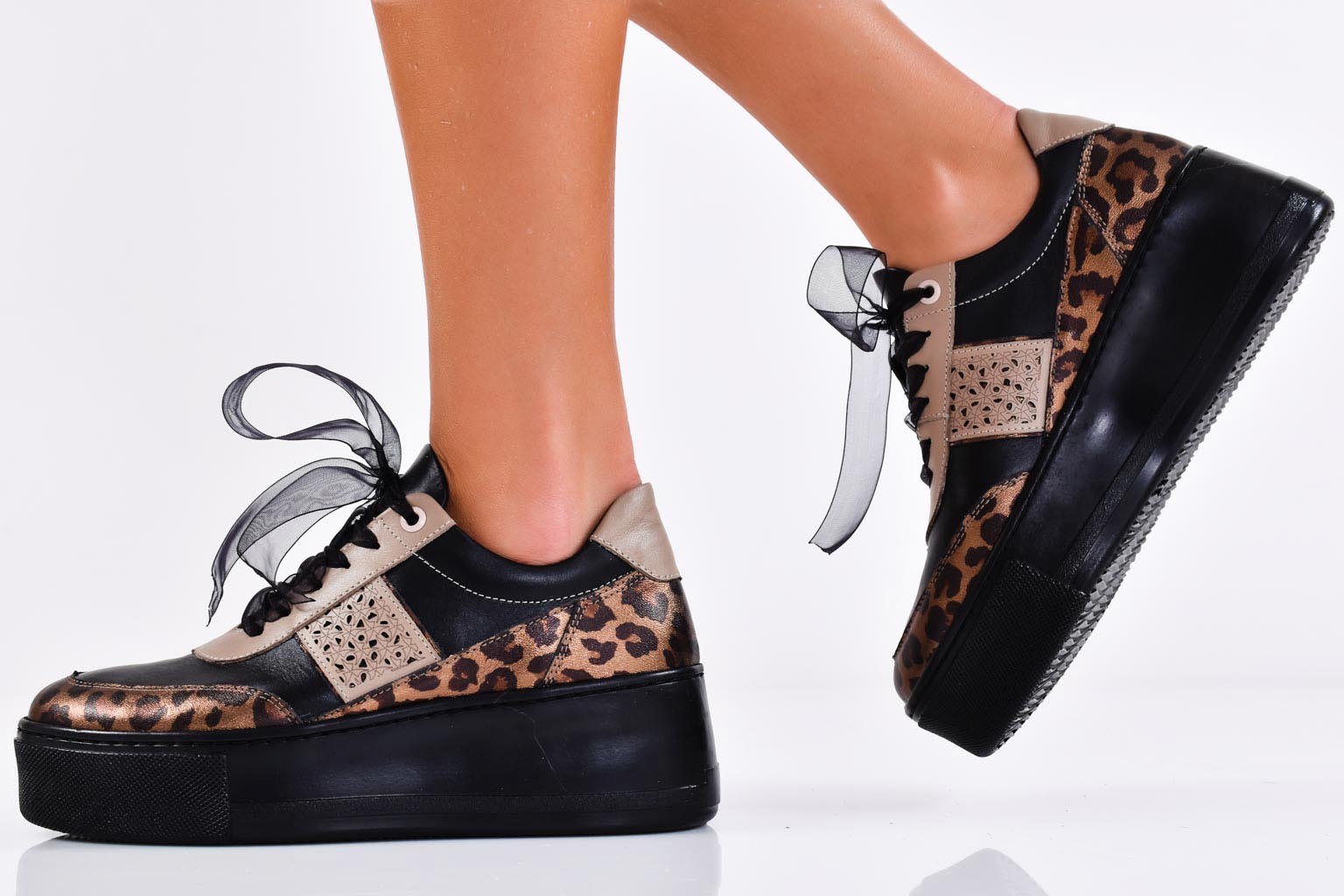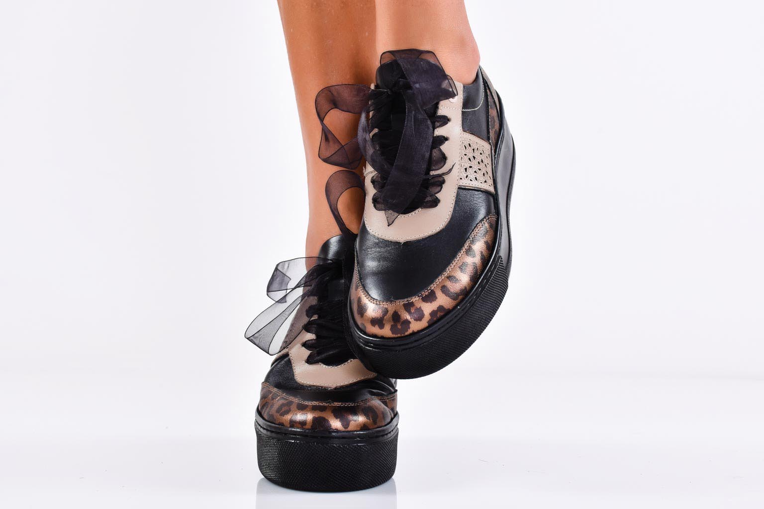 Дамски сникърси естествена кожа черни EOBUVKIBG