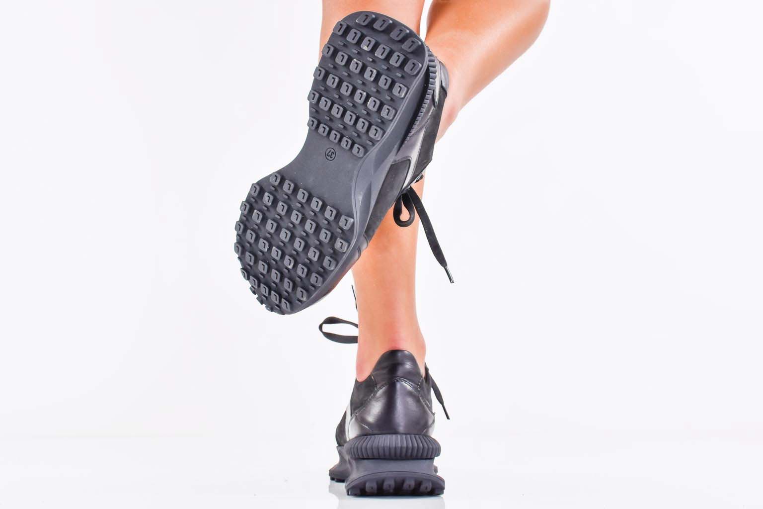 Дамски сникърси естествена кожа черни EOBUVKIBG #502-7214