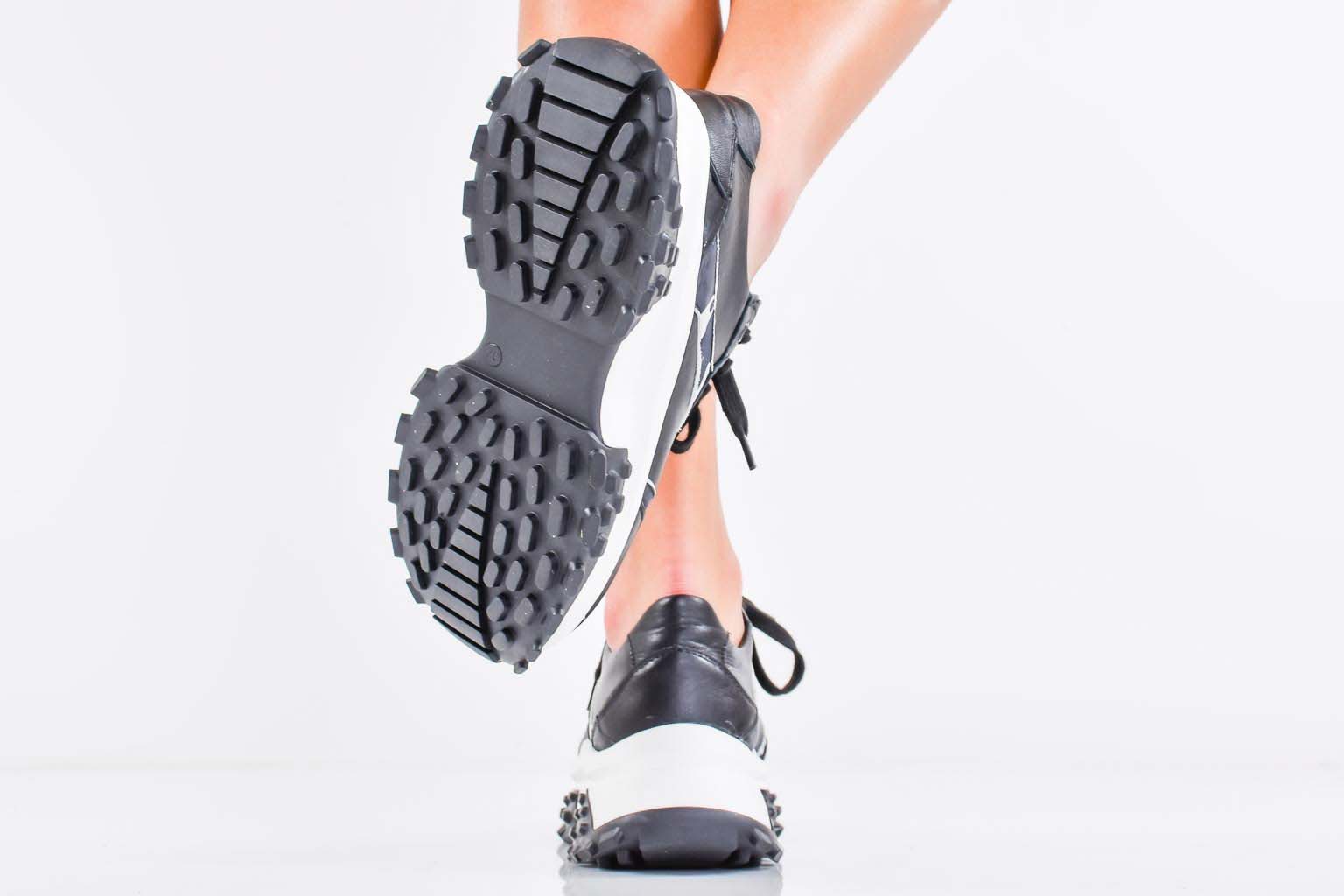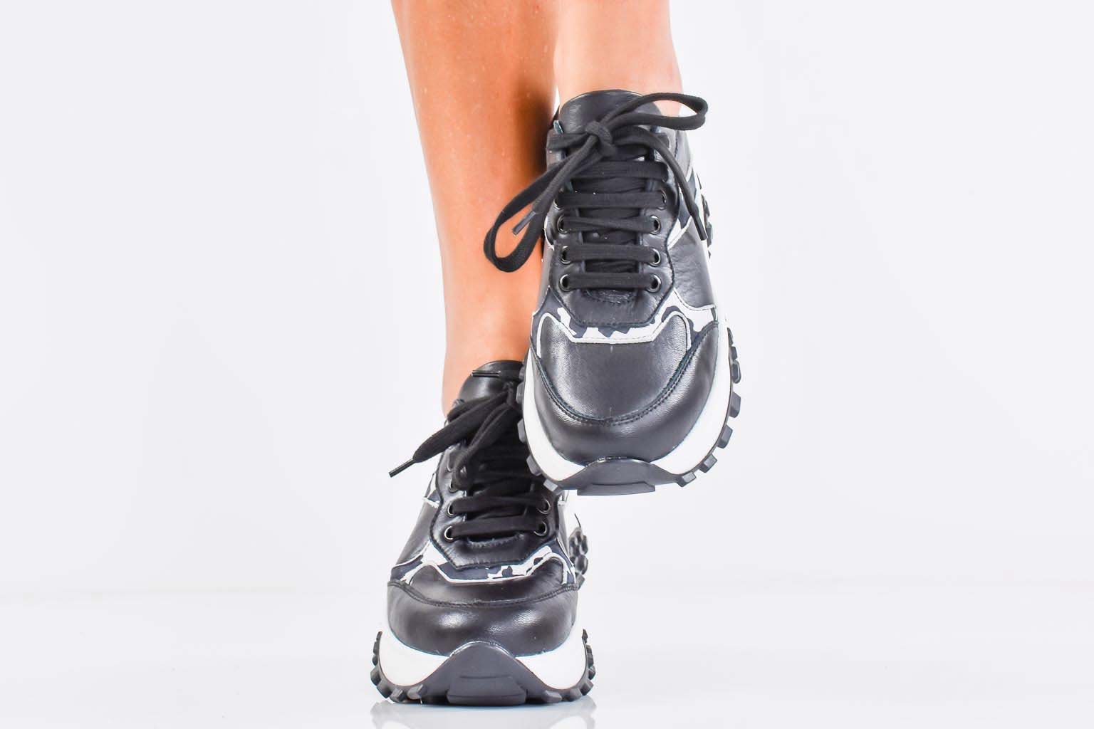 Дамски сникърси естествена кожа черни EOBUVKIBG #502-7421