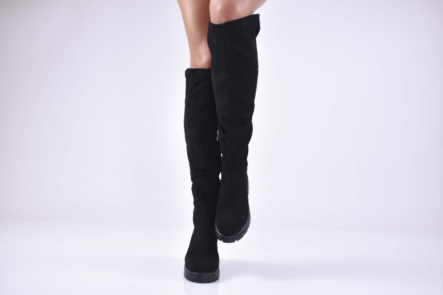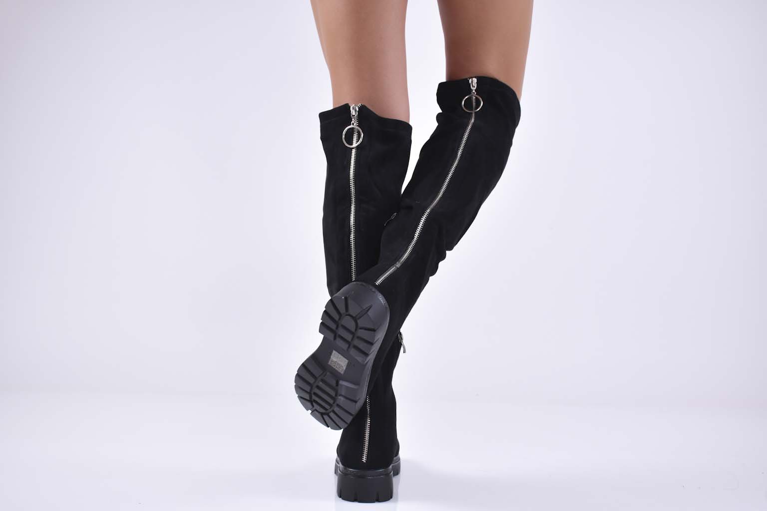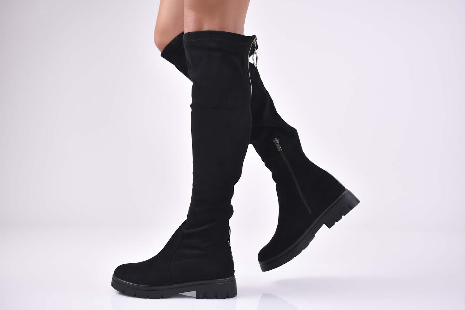Представяме на Вашето внимание черни дамски чизми 502-3444 в цвят черно. Моделът е решен с цип за по-лесно обуване.Вътрешността е от фин мек хастар, който допринася за допълнителният комфорт на крака. Характеристика; Височина на подметката в предната част; 1,5см. Височина на тока; 4 см. Височина на ботуша от петата до горе; 48 см. Цвят;Черно. Номерация;35-40: Моделът е стандартен и отговаря на размерите . Тегло на модела 37 размер 367 грама. Моделът е стандартен и отговаря на размерите.