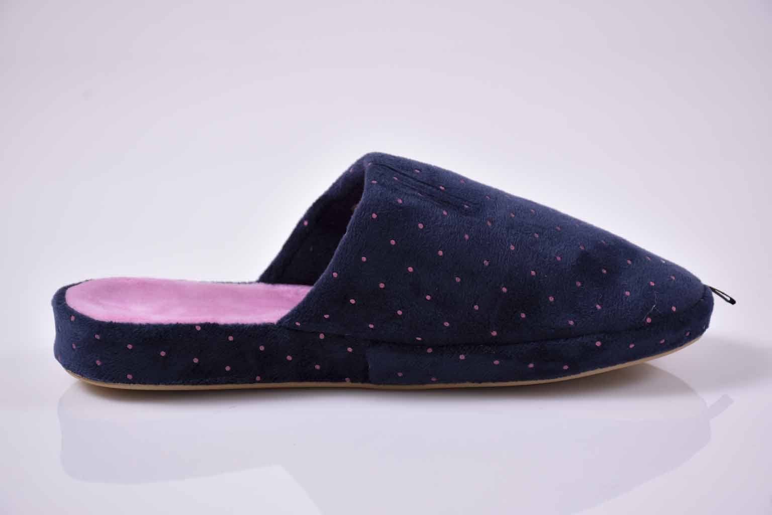 Представяме Ви, дамски домашни чехли EOBUVKIBG 62-2-N в син цвят. Моделът е изработен текстилен полар осигуряващ удобство и комфорт.Хастарът е текстилен полар за да затопля кракът Ви без изпотяване.Стелките са с анатомична извивка за максимално удобство и комфорт.Грайферното ходило на модела предпазва от приплъзване , а мекотата на подметката осигурява удобство и комфорт.За шевовете са използвани конци, които допълнително гарантират здравината на чехлите.