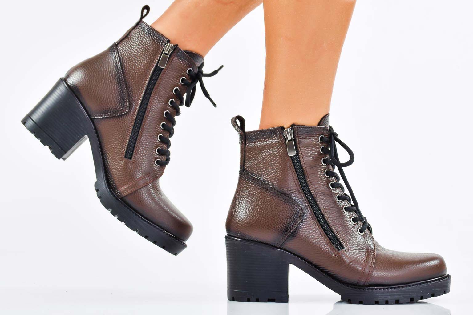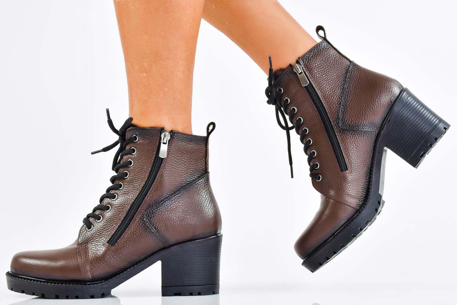 Дамски боти естествена кожа кафяви EOBUVKIBG #502-7490