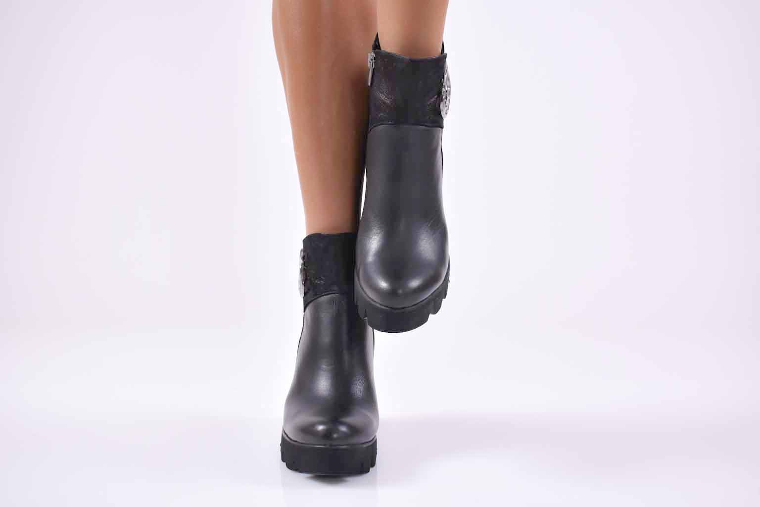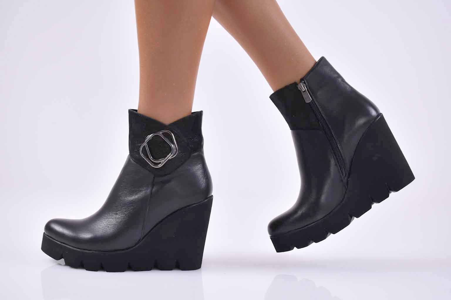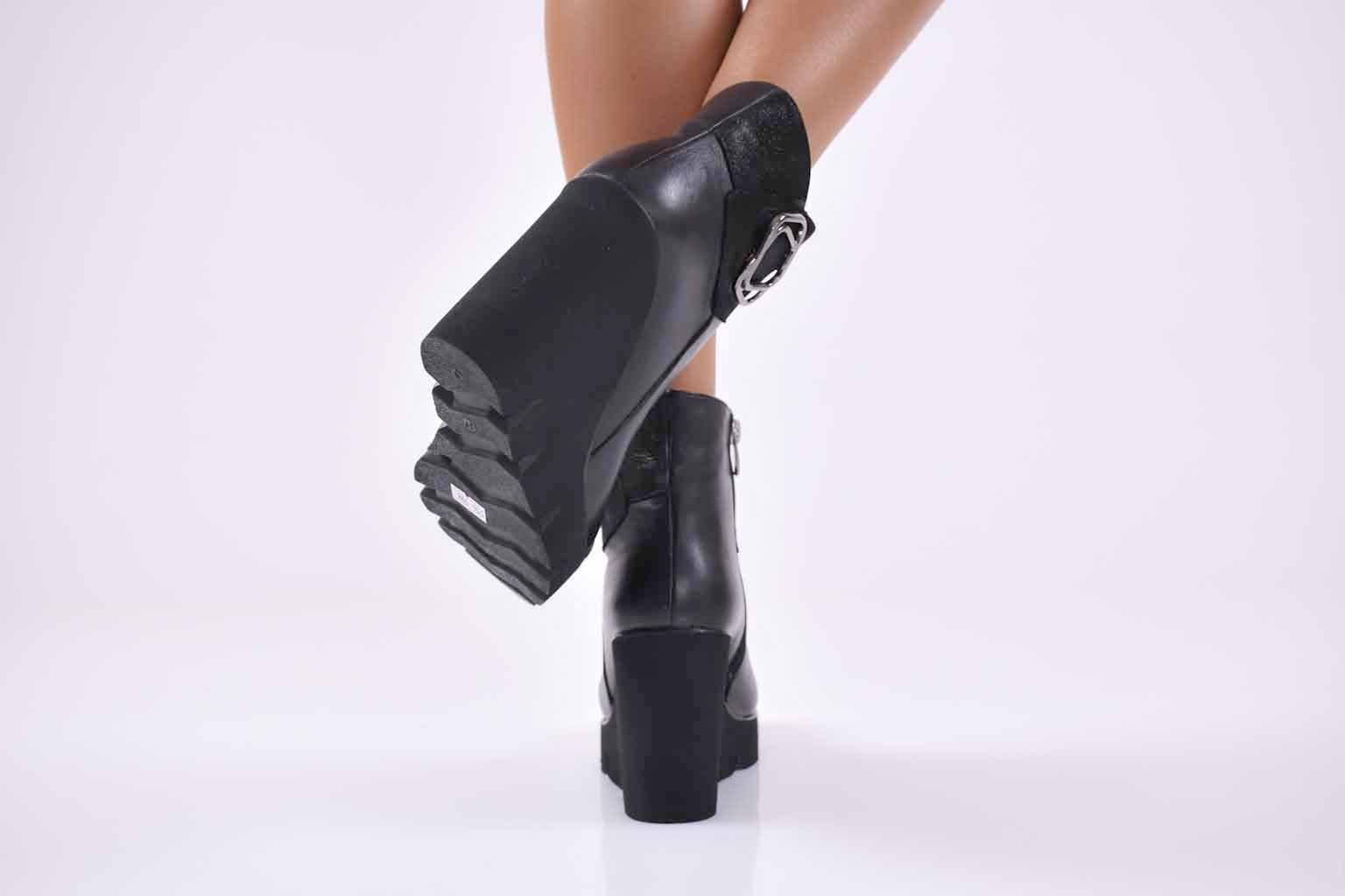 Дамски боти на платформа естествена кожа черни EOBUVKIBG #501-3941