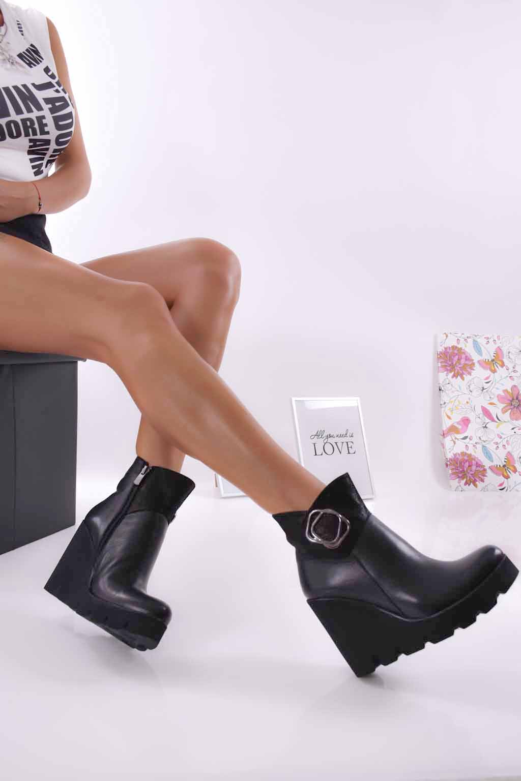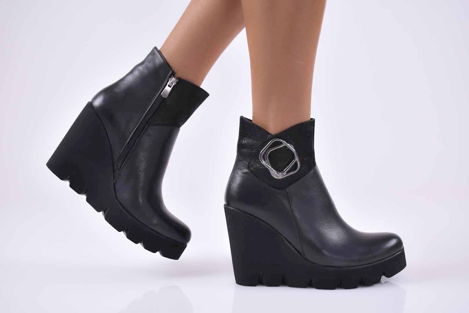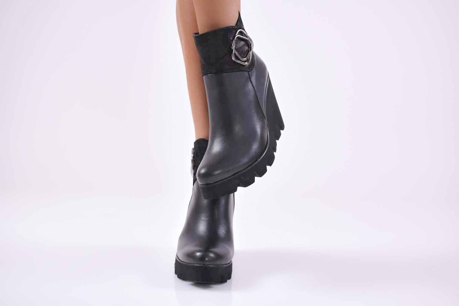 Дамски боти на платформа естествена кожа черни EOBUVKIBG #501-3941