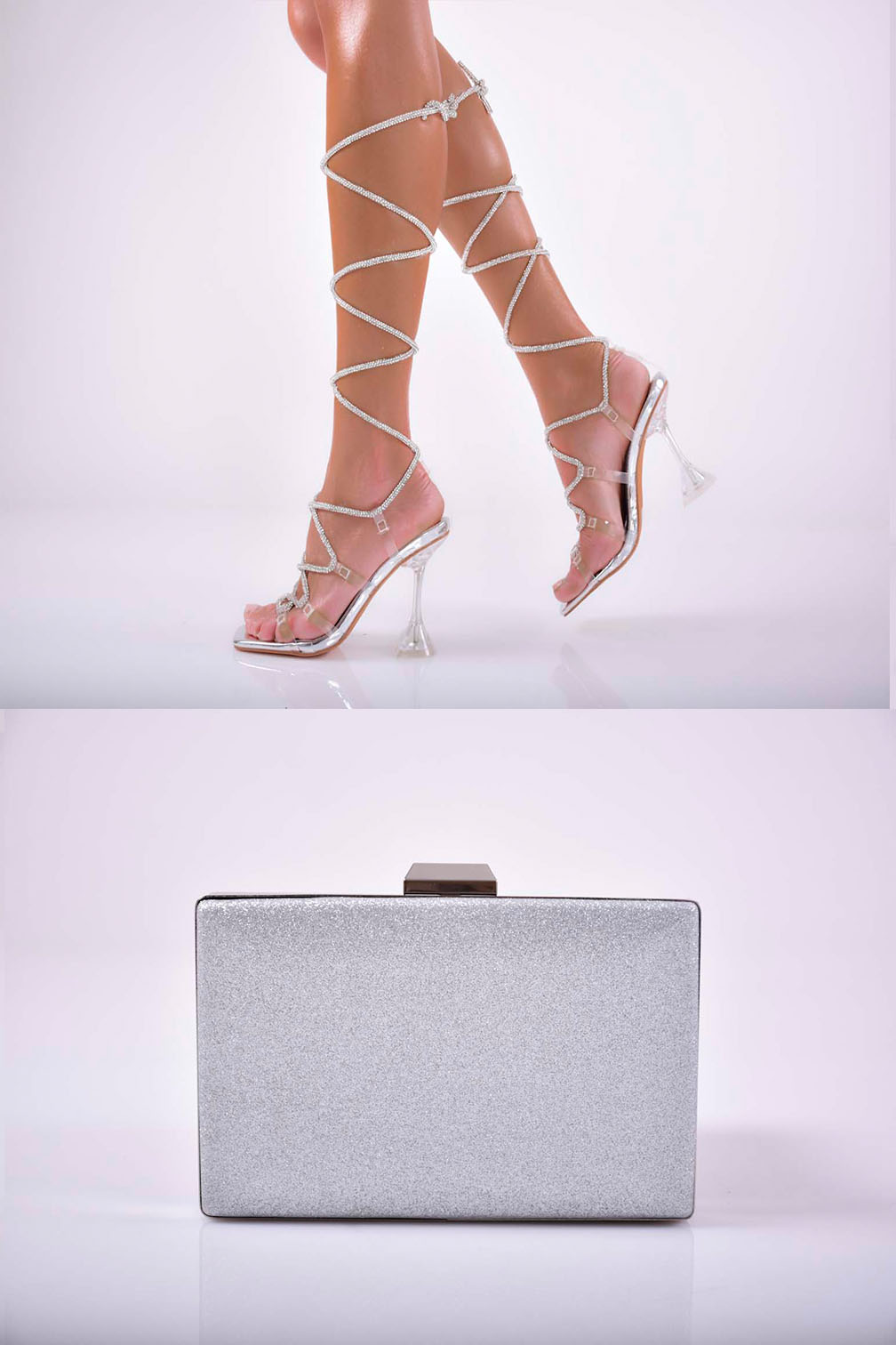 Комплект чанта и сандал сребристи EOBUVKIBG #502-5871