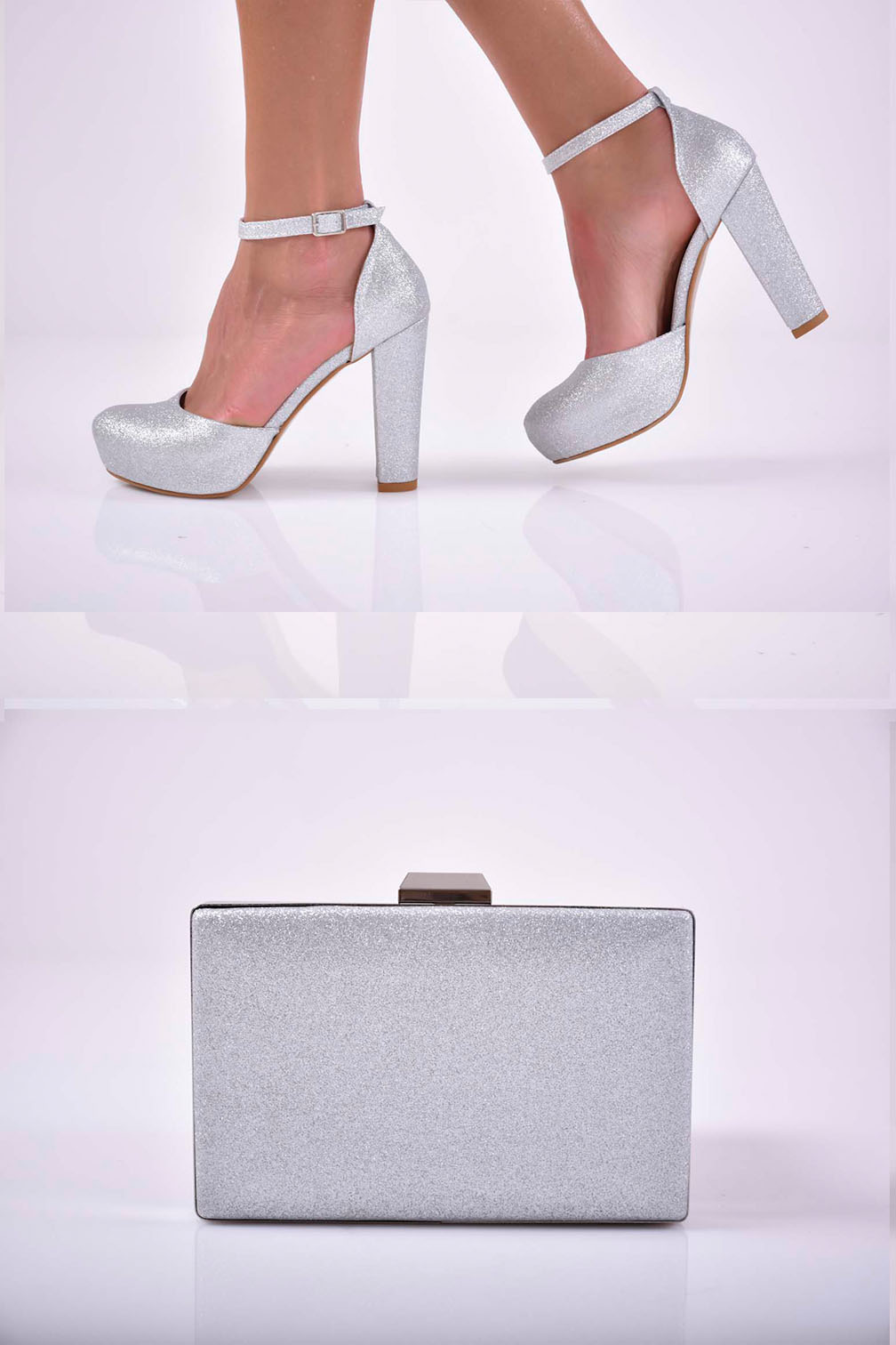 Имаме удоволствието да Ви представим комплект чанта и сандал EOBUVKIBG 502-5895 в сребрист цвят.Комплекта е подходящ за официален повод и събития като абитуриентски бал, сватба или вечерен повод. Чантата разполага с дълга дръжка и е с едно отделение и магнитно закопчаване . Характеристика:Височина на чантата: 12 см. Ширина на чантата: 20 см. Цвят: Сребрист. Kаталожен номер на чантата: 502-3683. Kаталожен номер на сандала: 502-3838. Характеристикa:. Височина на ходилото в предната част: 3 см.Височина на тока 10 см. Цвят; Сребрист. Номерация:35-40, Моделът е стандартен и отговаря на размерите.