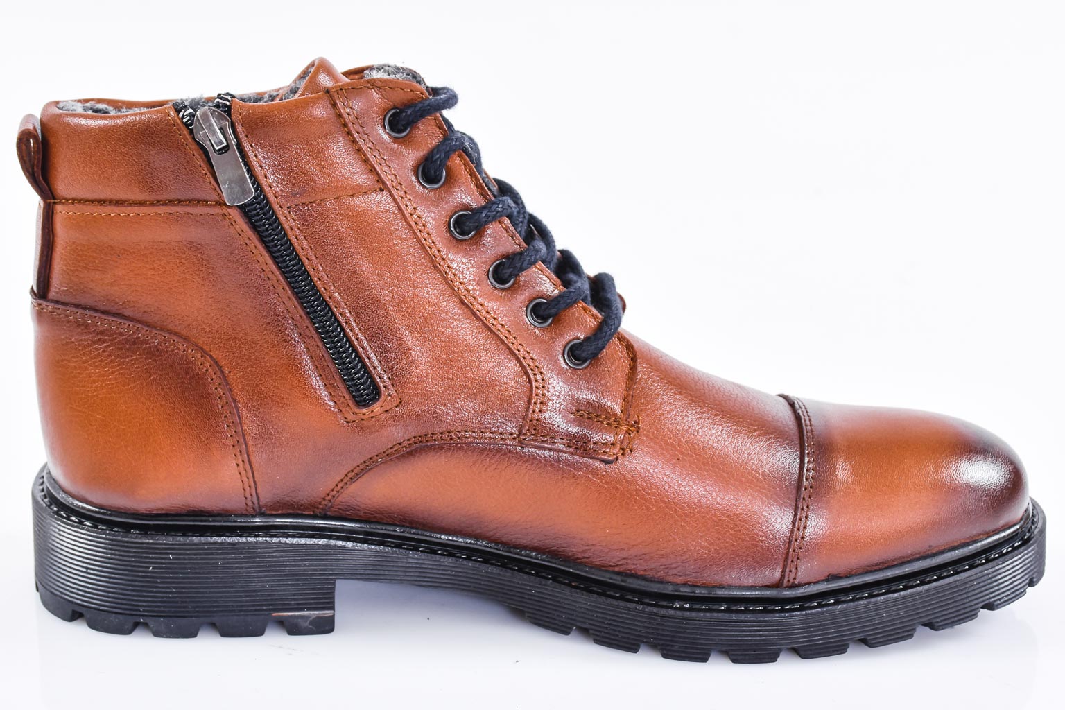 Представяме Ви, черни мъжки боти с връзки и цип EOBUVKIBG 502-7333, подходящи за есенно-зимния сезон. Горната част е изработена от висококачествена естествена кожа тип телешка напа. Ципът улесняват обуването. Вътрешността е от топъл хастар. Ходилото е стабилно не позволява пързаляне по мокри и хлъзгави повърхности.Характеристика; Материал;Естествена кожа Ходило;Каучук. Цвят;Кафяв. Височина на подметката в задната част 3 см. Височина на подметката в предната част;1,5 см. Номерация;40-44.Тегло на модела 42 размер 500 грама.