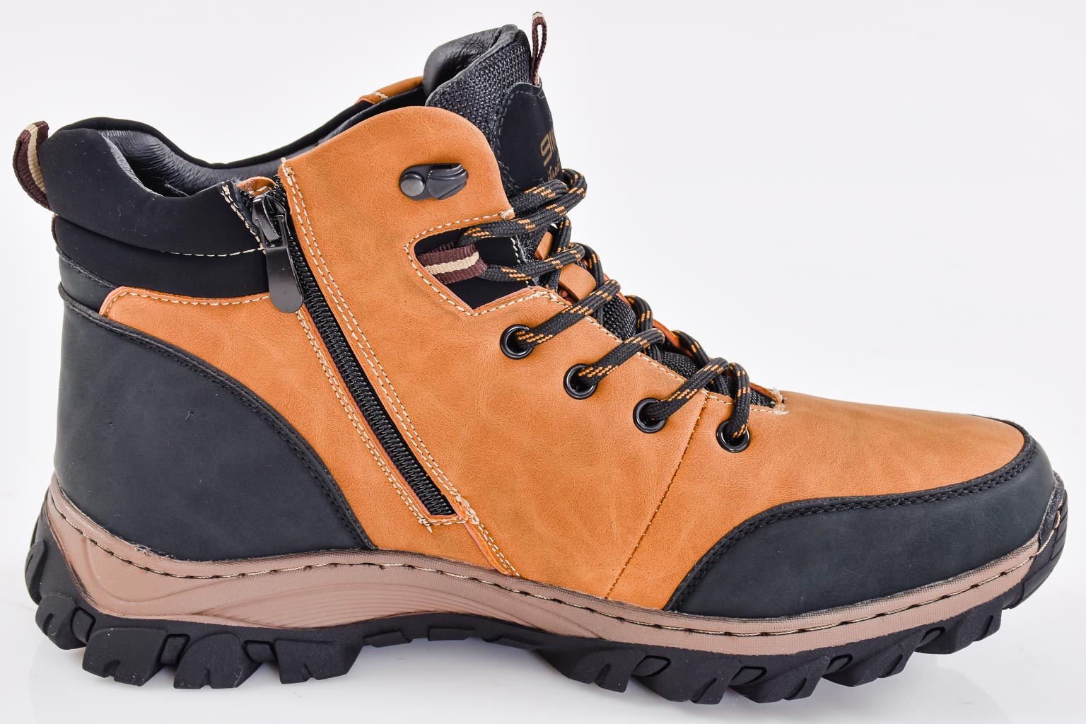 Представяме Ви, нов модел мъжки боти EOBUVKIBG 502-7132 в кафяв цвят. Лицевата част е изработена от водонепропускаем набук.Модела е с връзка и цип който улесняват обуването. Вътрешността е от топъл мек хастар. Ходилото е каучуково и не позволява пързаляне по мокри и хлъзгави повърхности за по-добро сцепление и термоизолация на крака. Материал; Водонепропускаем набук. Цвят;Кафяв. Височина на подметката в предната част; 2 см.Височина на подметката в задната част 3,5 см. Номерация;40-45 Моделът е стандартен и отговаря на размерите. Тегло на модела 42 размер 541 грама.