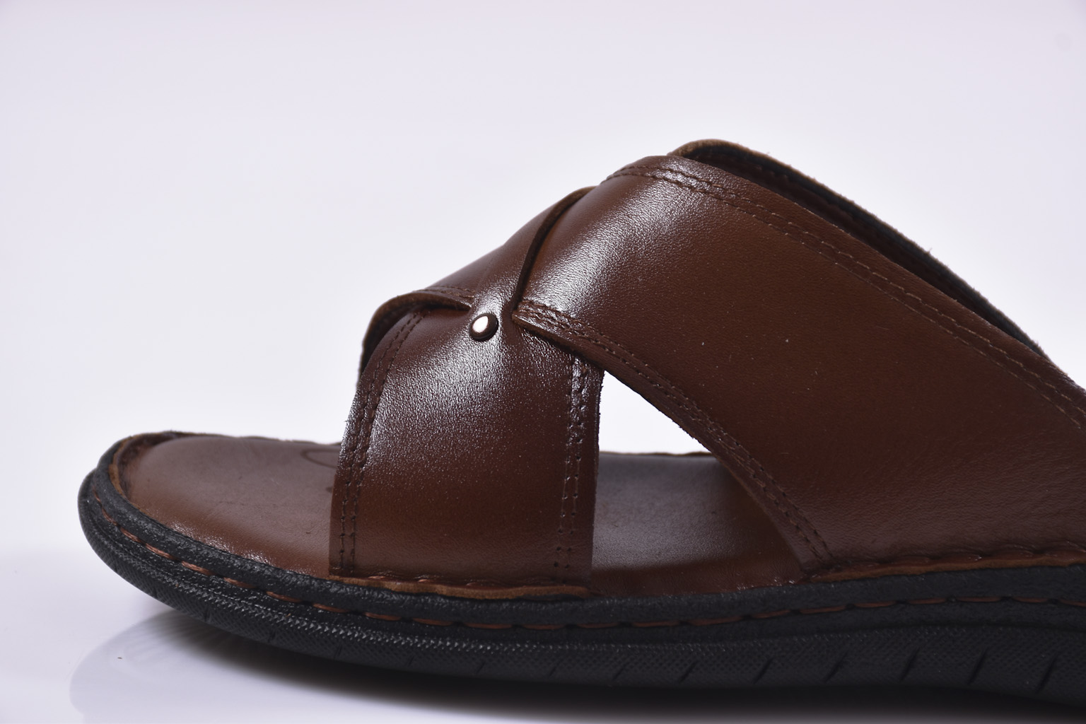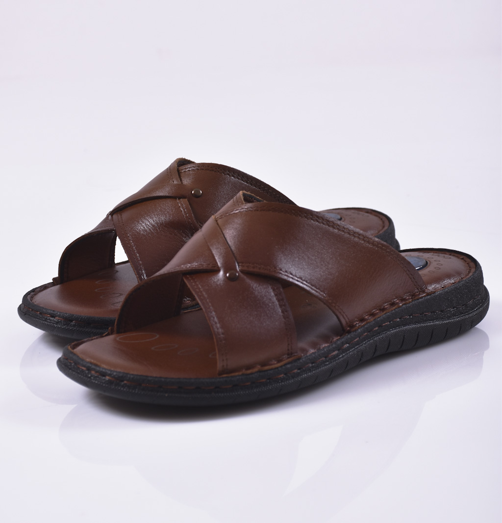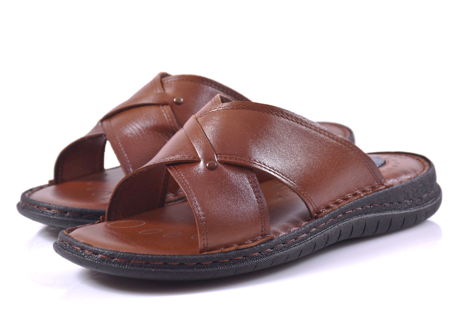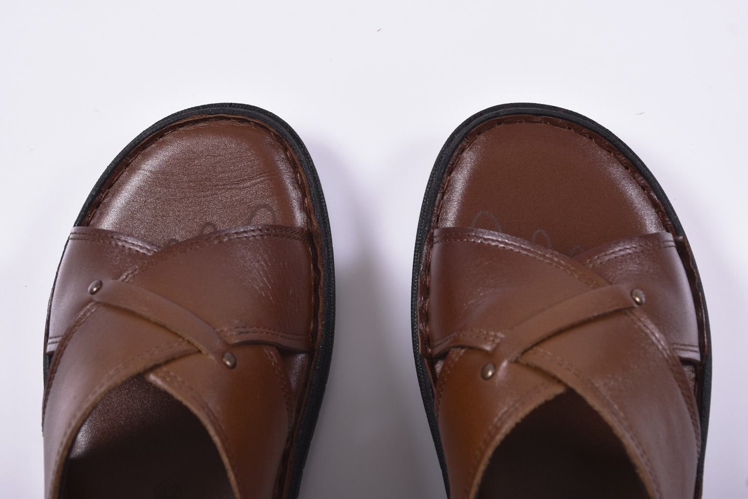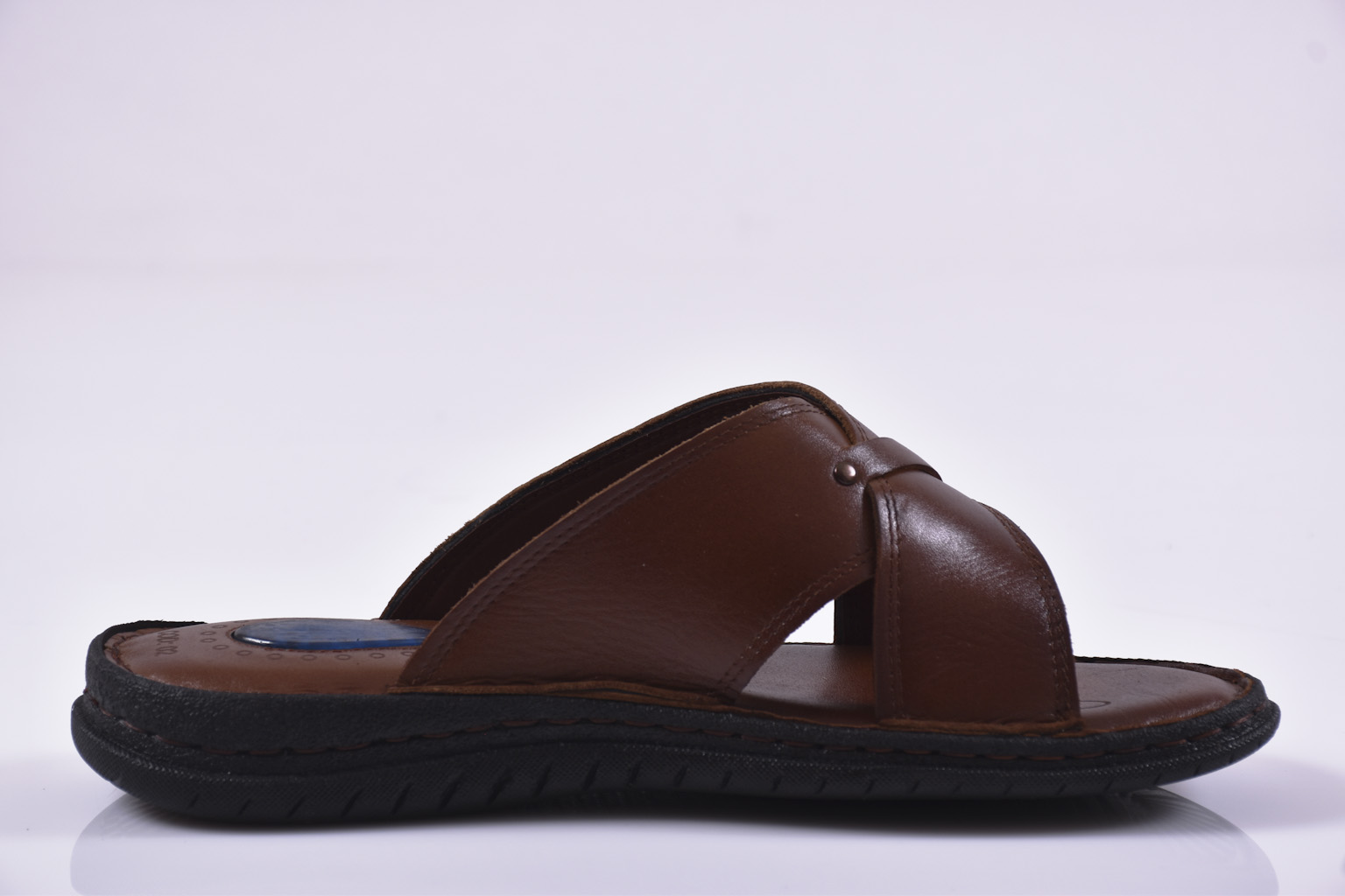 Мъжки чехли естествена кожа кафяви EOBUVKIBG #502-6820