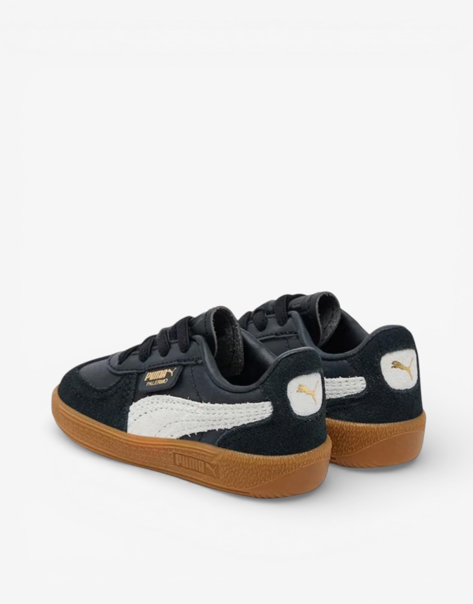 Страхотни детски маратонки PUMA в черен цвят, изработени от висококачествени материали. Детски маратонки Palermo от Puma, които са класически избор за ежедневна визия, тъй като могат лесно да се комбинират с всякакъв тоалет. Имат нисък профил, което не покрива глезена, за комфорт и гъвкавост при движение на стъпалото, при всякаква активност. Изработени са от кожа, материал, който предлага топлина, идеален за най-студените дни от годината. Адаптират се към формата на стъпалото, осигурявайки допълнителен комфорт. Лесни са за почистване, дори със суха кърпа. Подходящ избор са както за момчета, така и за момичета. Перфектно се съчетава с дънки, рокля или спортно облекло и е подходяща за ежедневието или градски разходки.