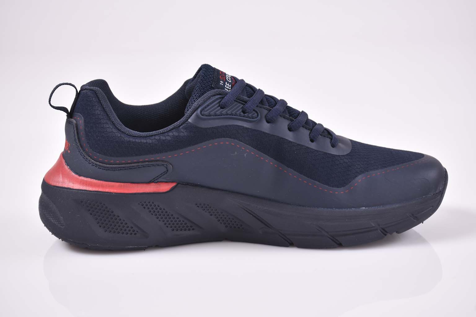 Представяме Ви, сини мъжки спортни обувки Lee Cooper 502-2868. Подходящи за спорт, фитнес или разходка. Горната част е направена от висококачествен текстил. Стелка от мемори пяна и гарантира удобство и комфорт при ходене. Стилът на Lee Cooper е успешно допълнение към всекидневни спортни облекла. Всички продукти от марката Lee Cooper са оригинални и са с гарантиран произход. Характеристика: Материал:Текстил. Височина на подметката отпред; 3,5 см. Височина на подметката отзад; 5см. Цвят;Син. Номерация: 41-46